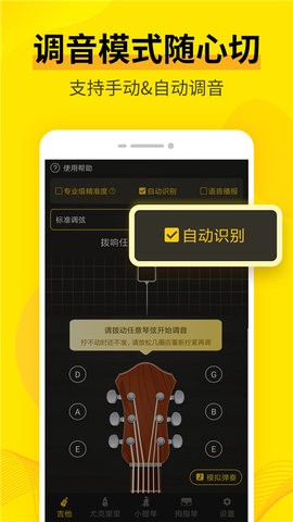 3、提供多种乐器模式:包括吉他、尤克里里、小提琴、中提琴、大提琴、低音吉他等。