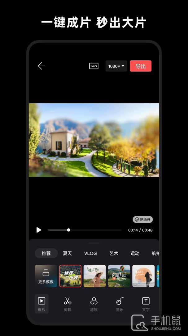 『操作简单』选择喜欢的模板,点击一下,一键导入视频片段,精美大片即刻生成。