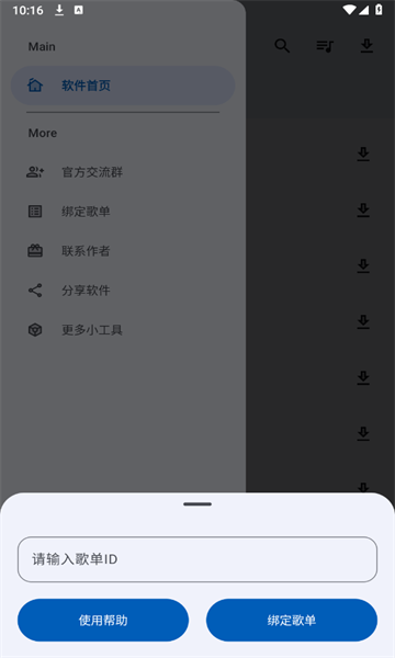 输入歌单id,点击绑定歌单即可(歌单id创建:打开酷我音乐,搜索或者自己创建个歌单,进入歌单界面后点击分享按钮,然后复制试听链接,刚刚复制的链接中,链接中的那串数字就是歌单id)