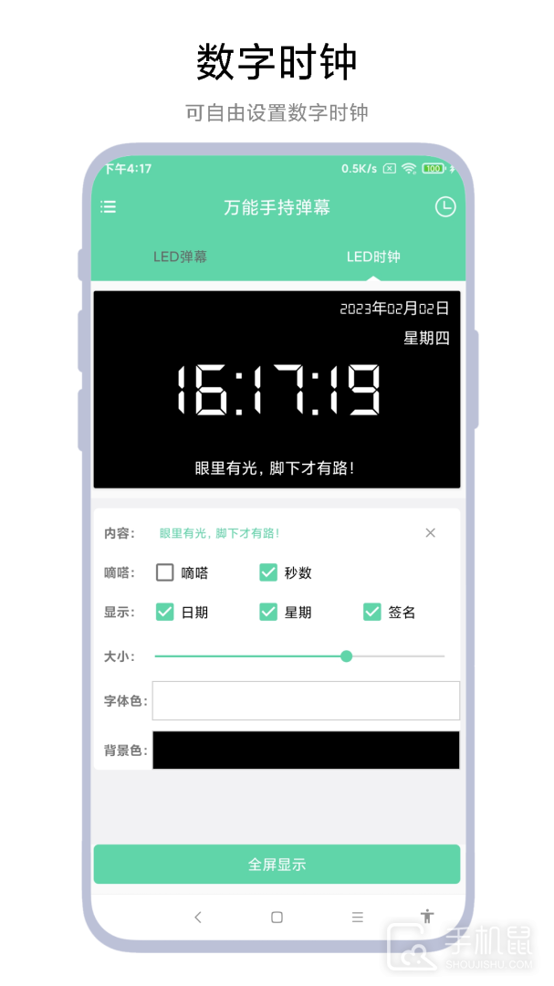万能手持弹幕是一款功能强大的安卓应用程序,它为用户提供了一种独特而有趣的社交体验,无论是在观看直播、视频或参加聚会活动时,只需打开此应用并输入你想发送的弹幕信息,即可将自己的想法和表达立即展现在屏幕上,支持各种颜色和字体风格,让你的弹幕更加个性化,你可以随心所欲地与他人互动、评论、表演甚至恶搞,温暖你的心灵同时也给他人带来欢声笑语,除了直播和视频外,还适用于各种聚会和活动,为你的日常生活增添乐趣和创造更多的回忆。