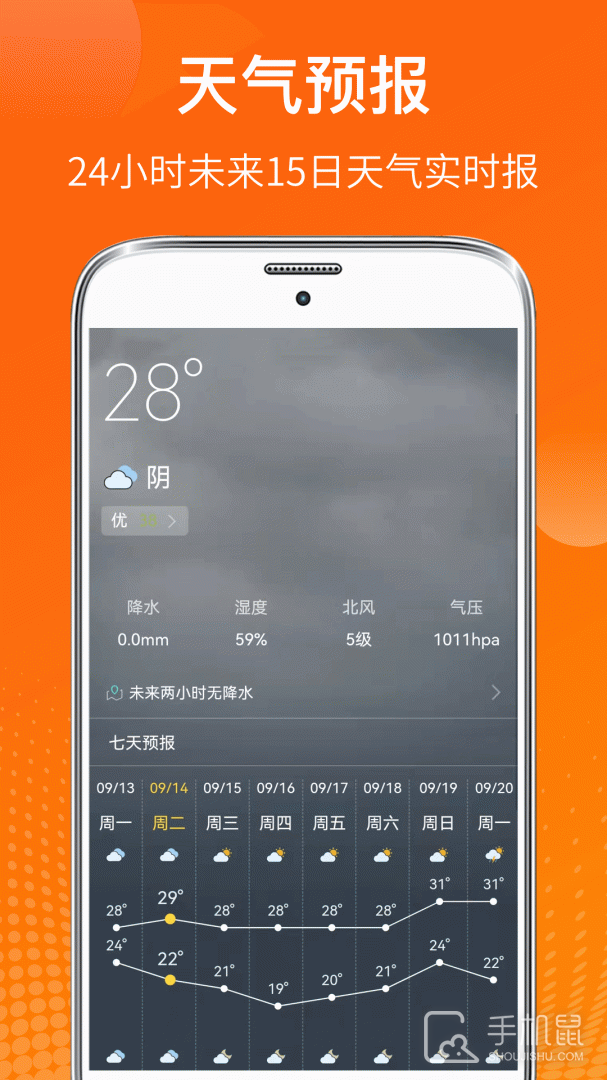 2、未来7天的天气预报可以提前预测未来的天气变化,提供洗车指数穿衣指数旅游指数以及日出日落时间