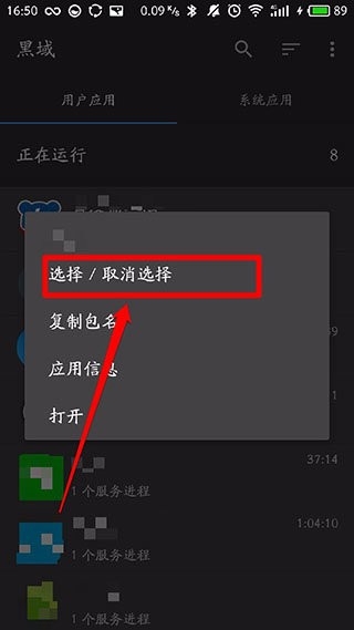 到这里黑阈就可以正常使用了,打开它,点击不想后台运行的应用;