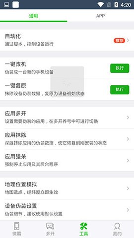 7、支持群控、云控接入!支持真机和各种模拟器!微霸多开App是史上最牛的应用多开+改机抹机+位置模拟工具,界面清爽,功能强悍。