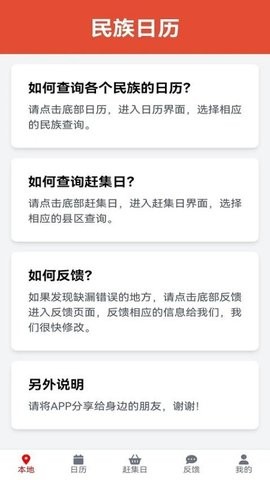 2、应用支持通过省市区域等条件进行查询,帮助用户更便捷地获取各个省市和民族的赶集日信息。