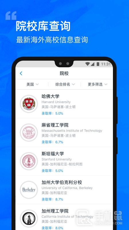 6、汇集qs、times和usnews等世界知名院校排行榜和专业排行榜,提供院校和专业在世界高校中的排行,并实时跟踪排名信息,作为学生选校的重要参考依据之一