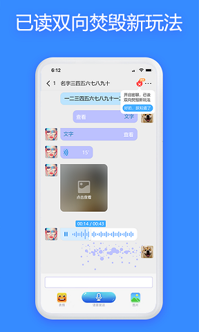名片更新提示等,与朋友家人保持即时的信息沟通,通过“阅后即焚”的功能。