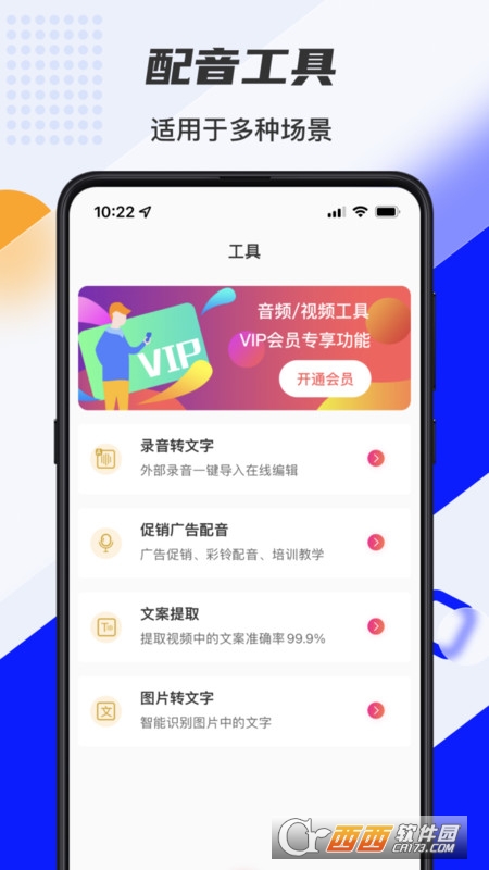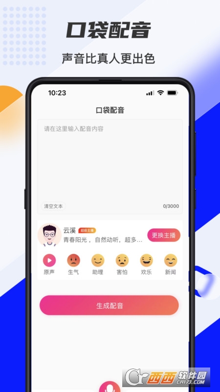 输入花样文字,智能文字识别,能调字体大小、添加背景音乐、语速调节,多种发音人选择,还能一键保存文本和录音;