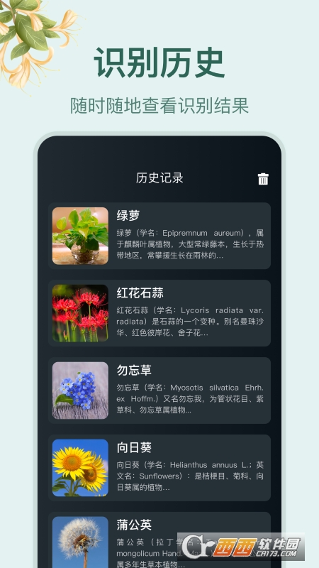 小园丁(植物识别)是一款专业的植物识别种植软件,使用方法简单,可以随时进行植物扫描识别,认知更多植物,拥有详细的百科知识介绍,实时记录历史识别内容,并且可以一键清除,辅助用户更好种植,适合多人群使用,感兴趣伙伴,鳄斗163手游网使用吧!