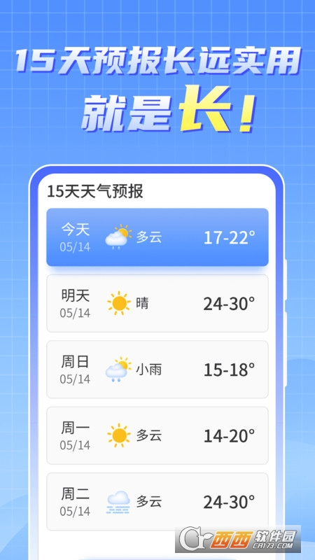 不仅可以了解到当天的天气情况,也可以了解半个月的天气预报状况。