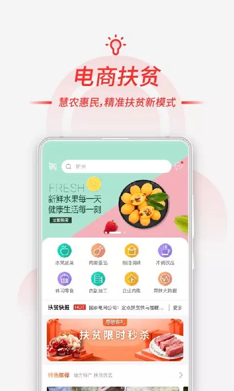 慧农帮是一款专注于农业扶贫领域的手机购物平台,提供全链条精准扶贫及精准营销服务。帮助农民解决农产品滞销问题,促进贫困地区脱贫,同时为用户提供农产品购买、帮扶社交沟通、精准营销等服务,助力国家乡村振兴战略。