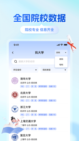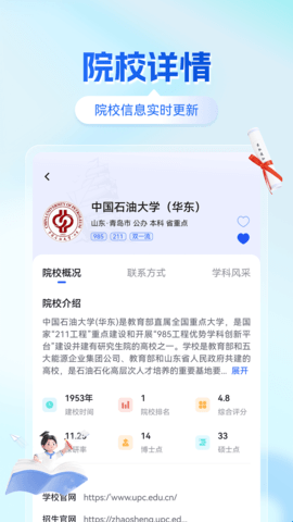 官方权威的院校数据信息,非常全面的院校介绍和专业简介,满足用户查看和择校需求;