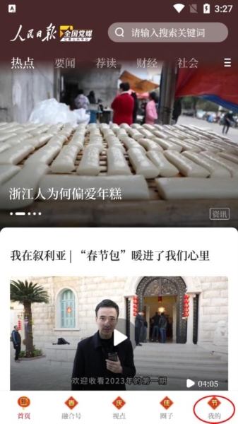 1、打开党媒平台软件进入首页后,点击【我的】;