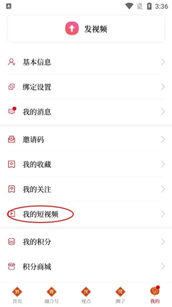 2、点击“我的短视频”;