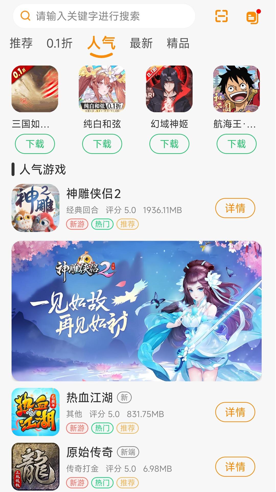 2.在人气页面中有很多人气游戏,你可以及时高效的进行试玩。
