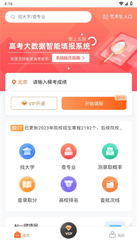2、进入软件之后,在“首页”可以进行一个模拟志愿填报。