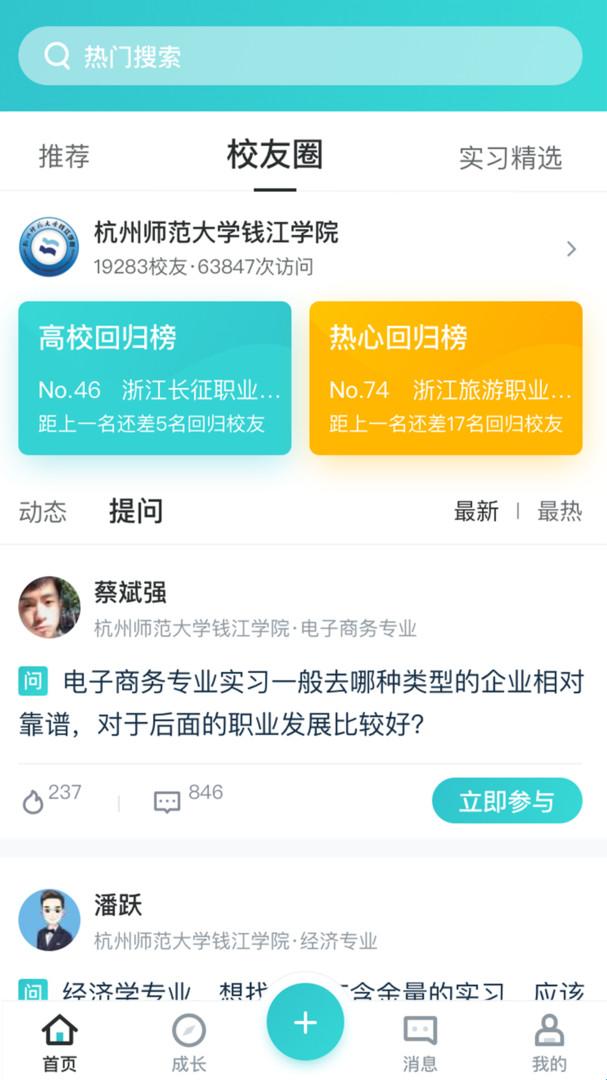3、为学生们打造了一个校友圈,能够在这里和同校的学生们进行交流。