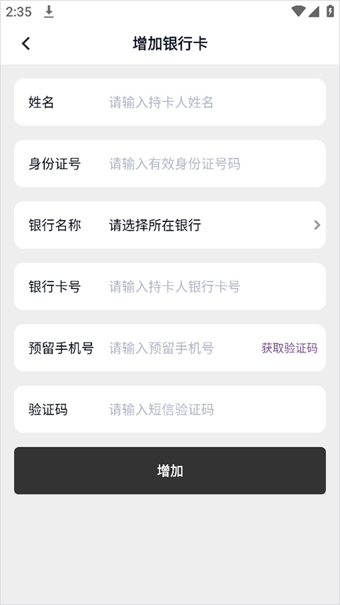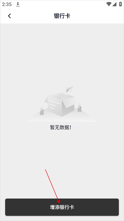 3、进入到银行卡页面,再点击底部的“增添银行卡”选项;