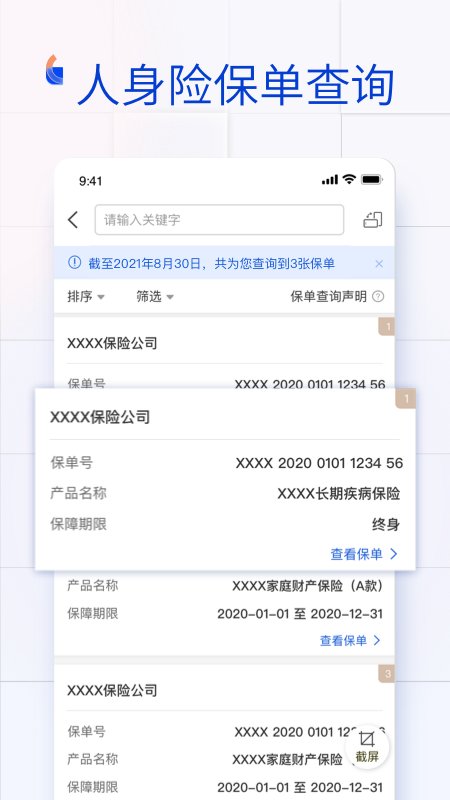 1.保单查询功能:方便查询自己的保单信息,包括保险期限、保险金额、受益人信息等。