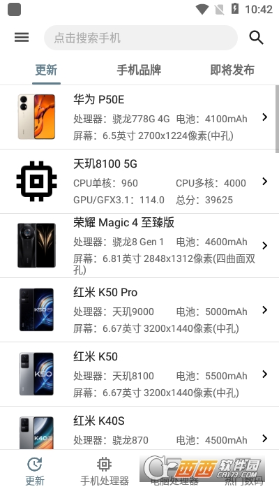 5、增加主流计算机CPU和GPU参数和对应搜索,手机处理器增加参考性能表现。