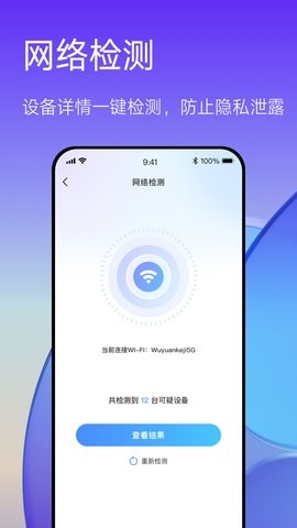 用户也可以便捷实现网络检测,对设备详情可以一键检测,扫描当前网络中的设备。