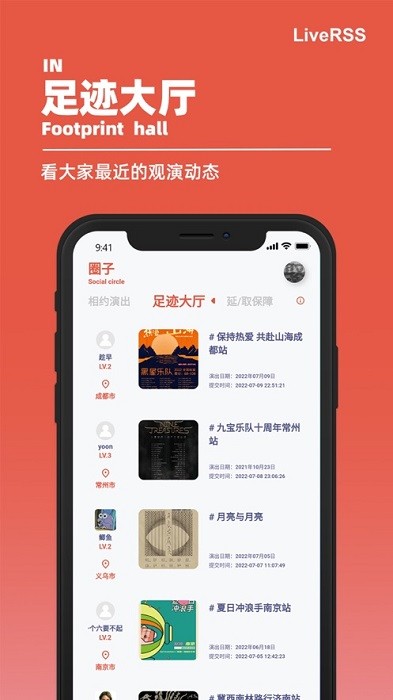 想要第一时间获取最新演出资讯?liverss官方版帮你轻松搞定!这款票务应用集合了全国各地的演唱会、音乐节、livehouse等演出信息,实时更新动态,让你随时掌握心仪演出的开票时间;简洁的购票界面三步就能完成下单,支持电子票与纸质票两种领取方式;还能在社区结识同好,分享观演体验,组队打卡热门现场。喜欢看演出的朋友快来下载体验吧!