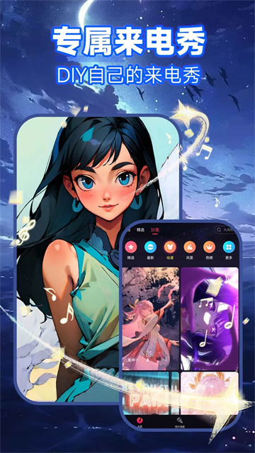 来电秀app让你拥有更独特的手机来电,这款软件拥有海量的精选图库、通话主题和悦耳铃声,不仅提供丰富铃声、来电秀资源,还支持来电视频自定义功能,操作简单,一键轻松设置个性来电,全部主题和壁纸资源都是可以免费石使用的,有需要的朋友快来下载体验吧。