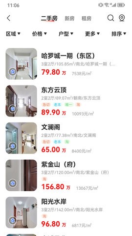 展示了清晰的二手房信息列表,通过多维度条件就可以轻松筛选需要的二手房,便捷筛选查找。