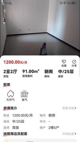 展示了详细的房源简介信息,用户可以查看房源的详情,掌握房源周边的配套。