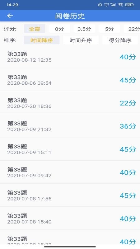 5、支持按时间、科目等多维度排序查阅历史记录;