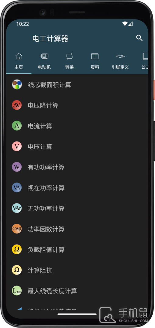 4、拥有全面的电气计算功能,如电动机、转换、引脚定义等,可分类查询;