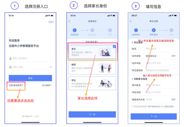第二步,学有优教APP注册,家长获取激活码后在APP端完成注册。