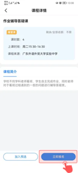 课程详情页展示教学安排、授课教师等完整信息;支持单个课程快速报名操作。