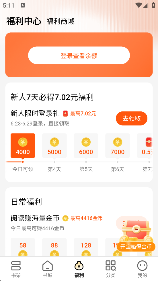 4、福利激励机制:通过阅读时长兑换金币或现金奖励。