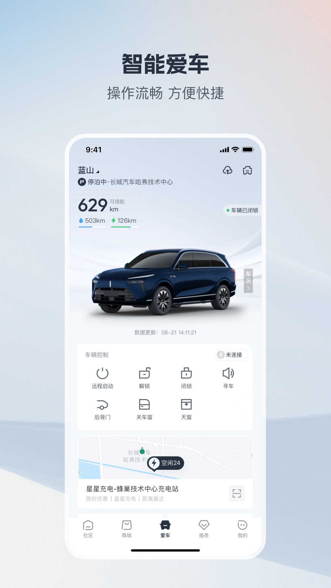 长城汽车app正式版是长城汽车为各位车主们打造的智慧车联服务软件,在这里你可以查看长城汽车的购车权益,在线预订;还可以智能操作你的爱车,享受便捷的车主服务,有需要的用户赶紧来本站下载吧。