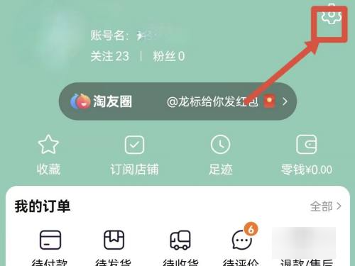 在我的淘宝页面打开右上角的设置选项。