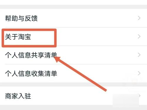 进入到设置列表后,打开关于淘宝选项。