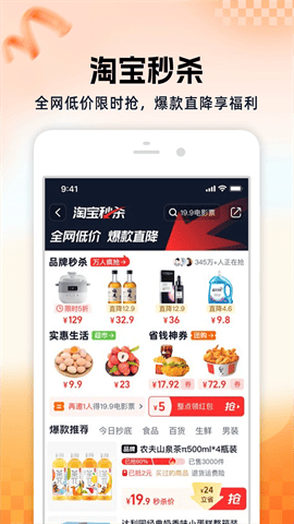1.淘宝秒杀:全网低价限时抢,爆款直降享福利;