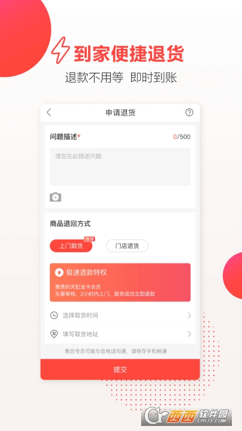 实体门店购物线上就能退,顺丰2小时上门取件,金卡铂金卡限额内极速退,退货发出,退款即到。