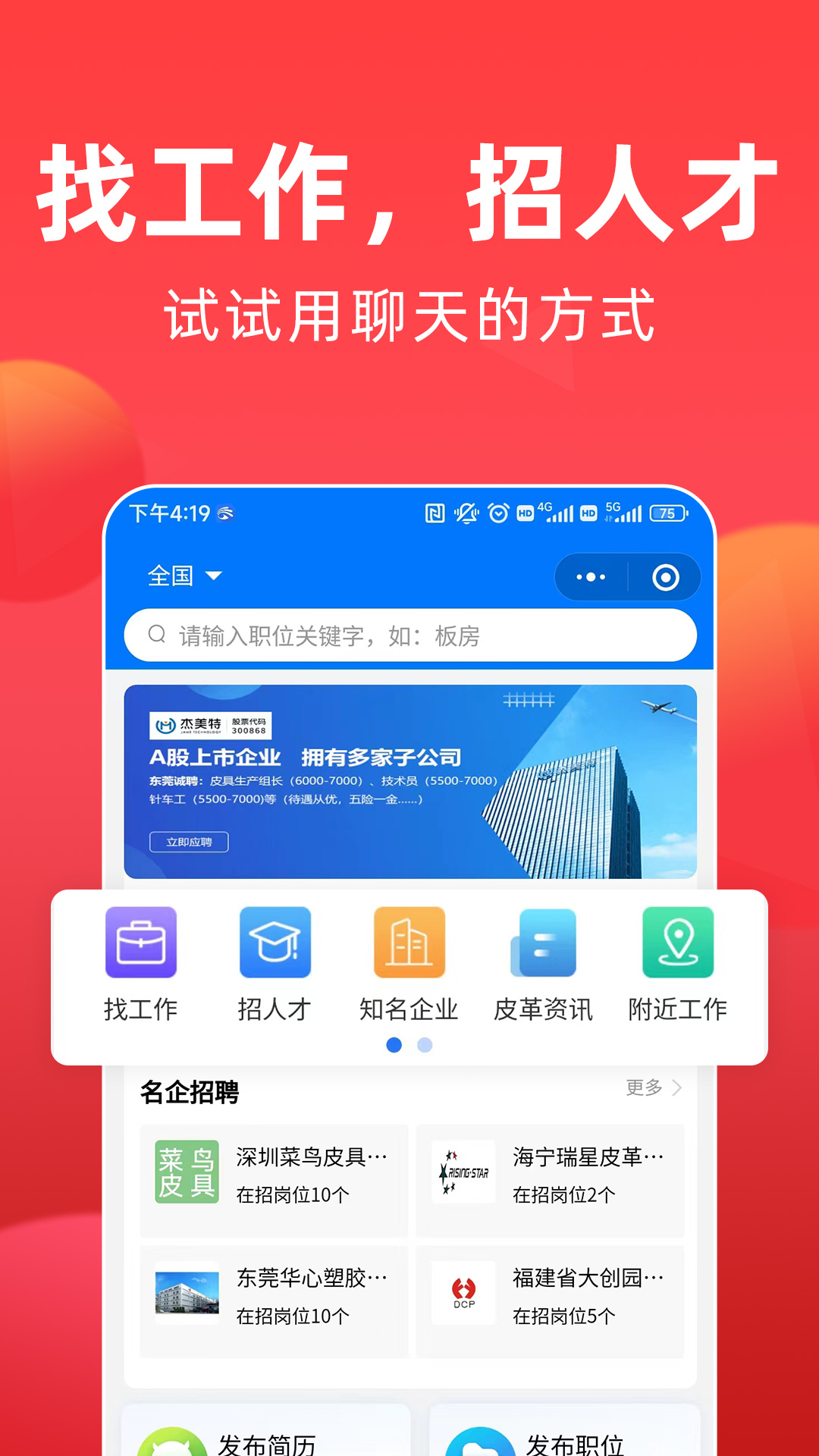 找工作招人才:整合皮革鞋业领域海量招聘信息;
