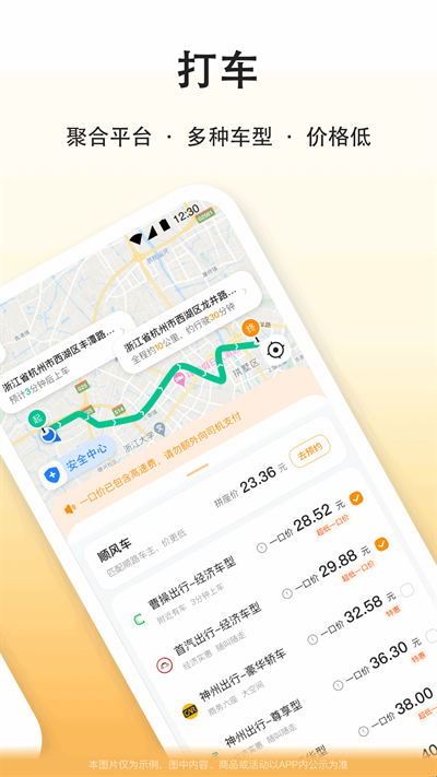 3、除了提供顺风车服务之外还有打车、送宠物、急件等三个功能;