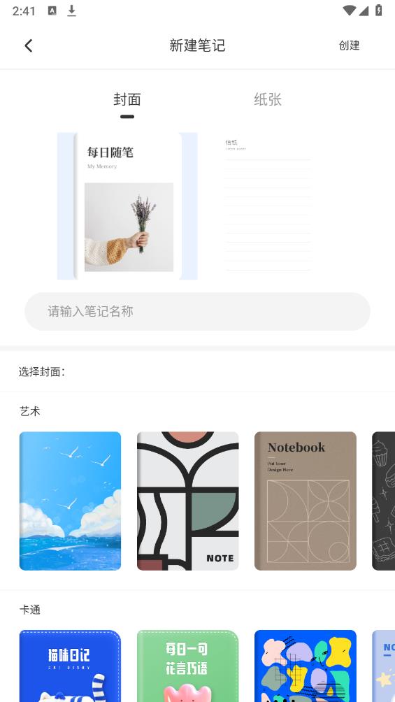 2、在首页点击“+”—“新建”按钮,选择笔记本的类型和主题,输入笔记本的名称