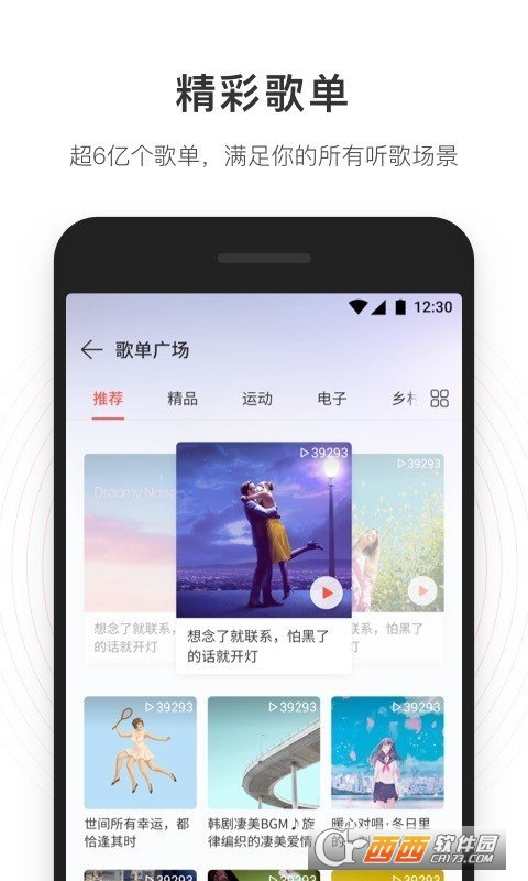 3、国内首个以“歌单”作为核心架构的音乐APP,又全又优质的“歌单”库,批量遇见好听音乐更加简单;一步轻松创建“歌单”,音乐分享又容易又有趣;