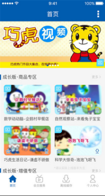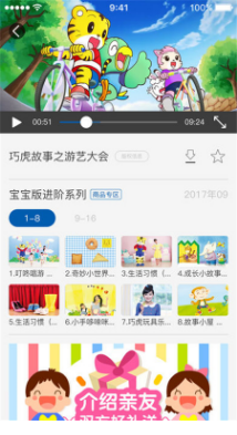 2、视频乐园:商品配套动画、巧虎岛原创剧集、主题场景化教学视频。