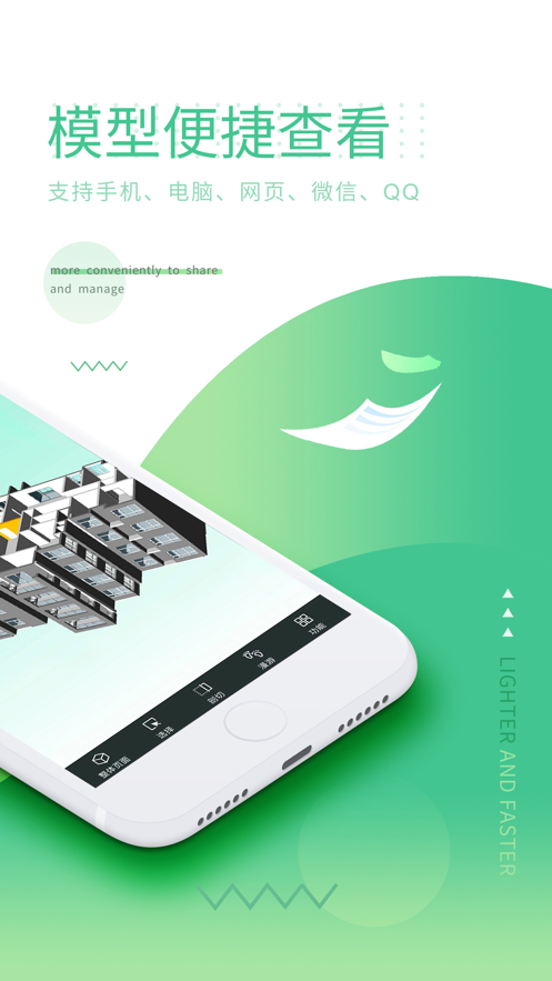 全面支持P-BIM、Revit、OBJ、SKP等格式模型上传与查看;提供多角度浏览模式,模型数据可分享至微信、QQ等社交平台;