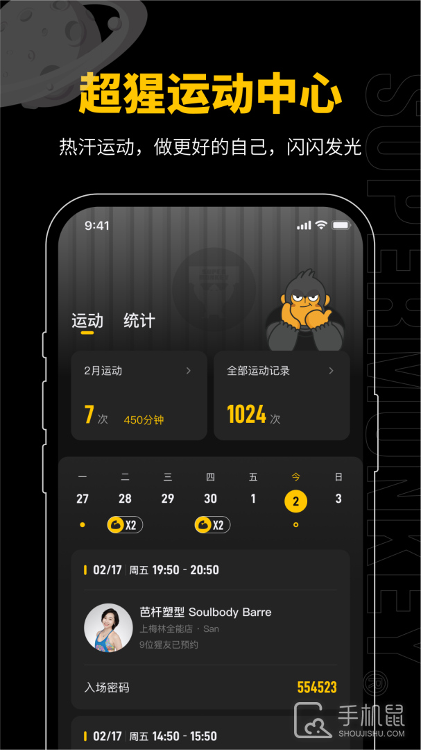 清爽设计的超级猩猩运动中心,在这里一站式管理你的运动日程安排、查看你的运动数据,还有猩相册、月度报告都可以一键直达…热汗运动,做更好的自己,闪闪发光啊猩!