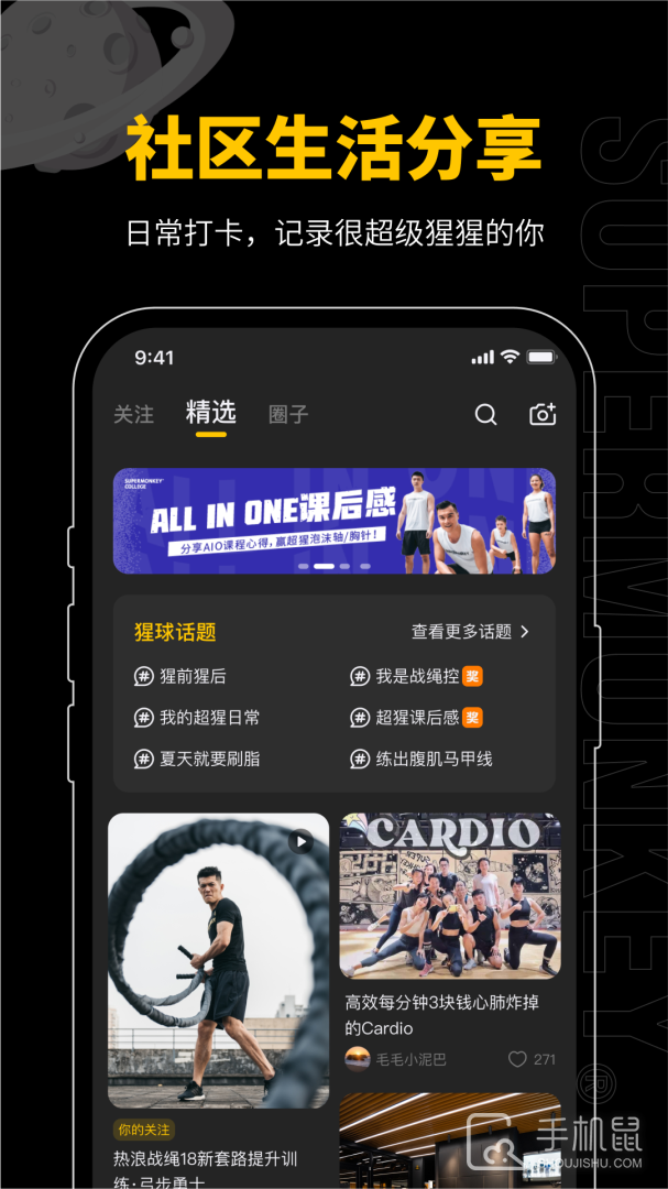 记录运动生活,分享你的热爱。在猩球社区你可以通过文字、图片、短视频、等方式记录健身运动训练轨迹,分享运动生活日常、运动穿搭秘籍、健身训练心得、健康的生活方式……