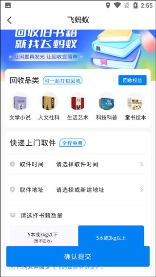 3、然后选择回收的【上门取件时间以及书籍数量】