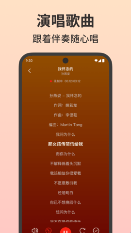 3.在录制页面中,录制你想唱的歌曲,并且可以完整显示相应的歌词。