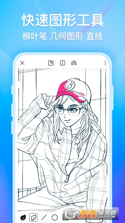 3、专业的绘画工具,方针笔,无限的撤销与重做、照片导入后进行编辑,快速绘制直线、柳叶笔等