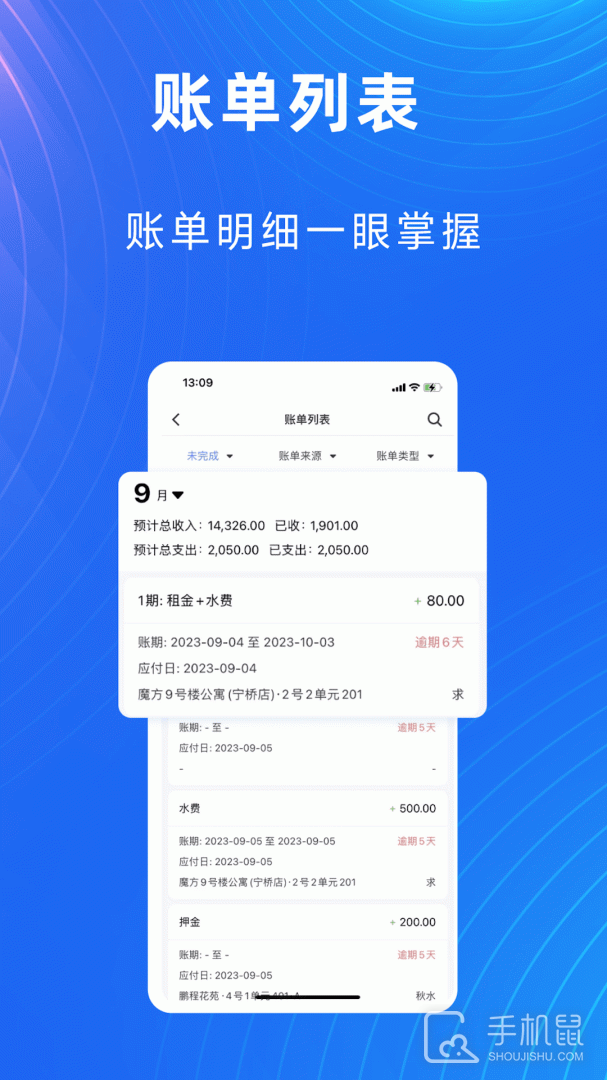 4、然后可以开始查看账单信息,了解各个租客的租金到期时间